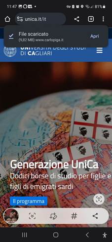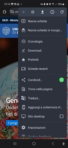 6. Potrebbe capitare che dopo il punto 1 non si faccia in tempo a clickare sul testo “Apri”. In questo caso è necessario clickare sui tre puntini bianchi sovrapposti in alto a destra della schermata di Chrome